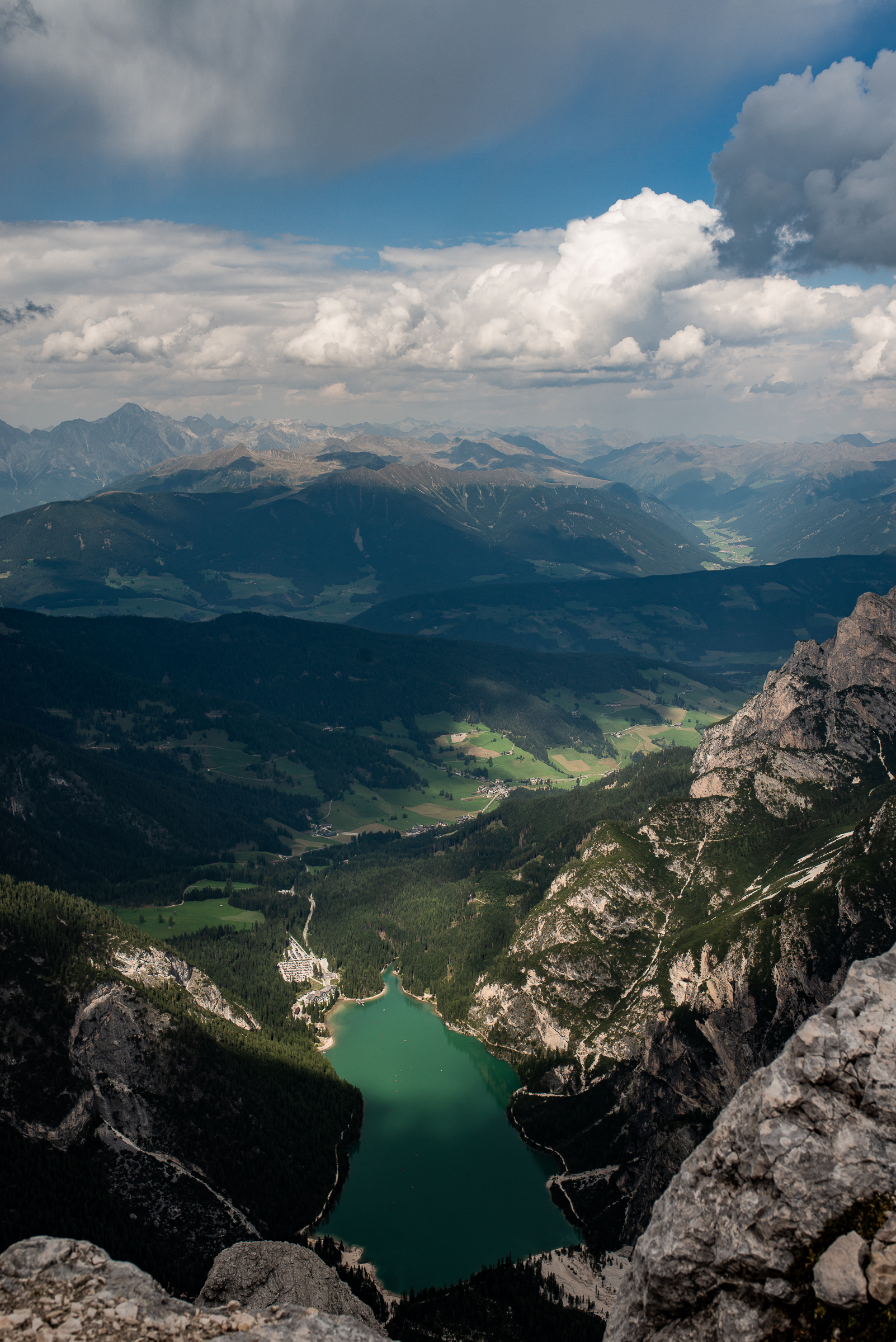 Der Pragser Wildsee gehört zu den bekanntesten Fotomotiven Südtirols. Türkisblaues Wasser, umrahmende Berge, das kleine Bootshaus — das Bild kennt man. Was man weniger kennt: was passiert, wenn man von dort aus aufsteigt.