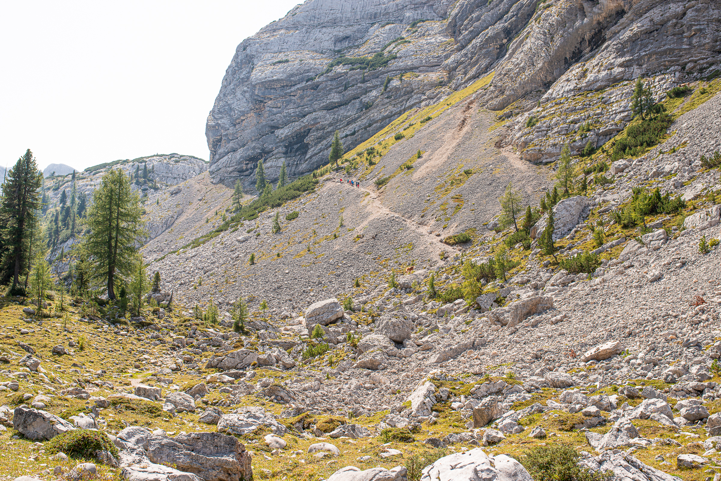 Wir starteten früh am Morgen, während der See noch in der Stille des Talbodens lag. Das Ziel: der Seekofel, ein Gipfel, der von hier aus erreichbar ist und über den Massenandrang am Seeufer hinausführt. Hinauf bedeutet: raus aus dem Postkartenmotiv, rein in die Dolomiten, wie sie wirklich sind.