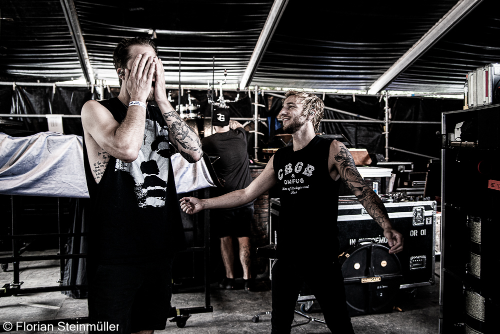 Als Fotograf mit der Band zu arbeiten ist eine andere Erfahrung als der klassische Fotopit. Man ist nicht für drei Songs dabei und dann weg — man ist Teil des Tages. Soundcheck, Backstage, der Moment kurz vor dem Auftritt, wenn sich die Stimmung verändert. Das sind die Bilder, die man sonst nicht bekommt.
