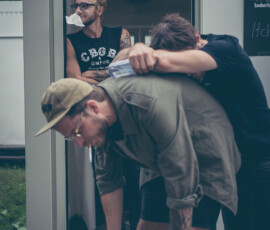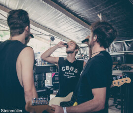 Backstage bei einem Festival ist kein glamouröser Ort. Catering-Zelte, Technik, Roadcases, Kabel. Aber es ist der echte Ort — uninszeniert, direkt. Genau das, wofür ich fotografiere.